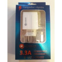 CARGADOR 220V-5V LIGHTNING+2 USB 3.1A KARSEN